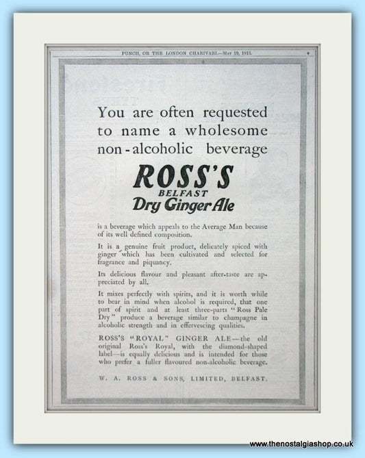 Ross's - Belfast Ginger Ale. Vintage Advert 1919 (ref AD67092)