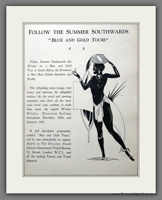 South Africa. Blue and Gold Tours. Set of 3 Original Adverts 1930 (ref AD301414)