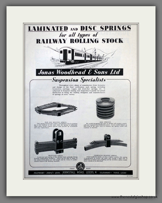 Jonas Woodhead & Sons Ltd. Leeds. Railway Springs. Original Advert 1945 (ref AD53109)