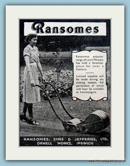Ransomes Lawnmowers. Set of 2 Original Adverts 1940s (ref AD4623)
