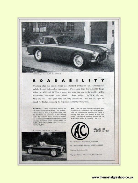 AC Aceca 2 Seater 1955 Original Advert (ref AD1445)