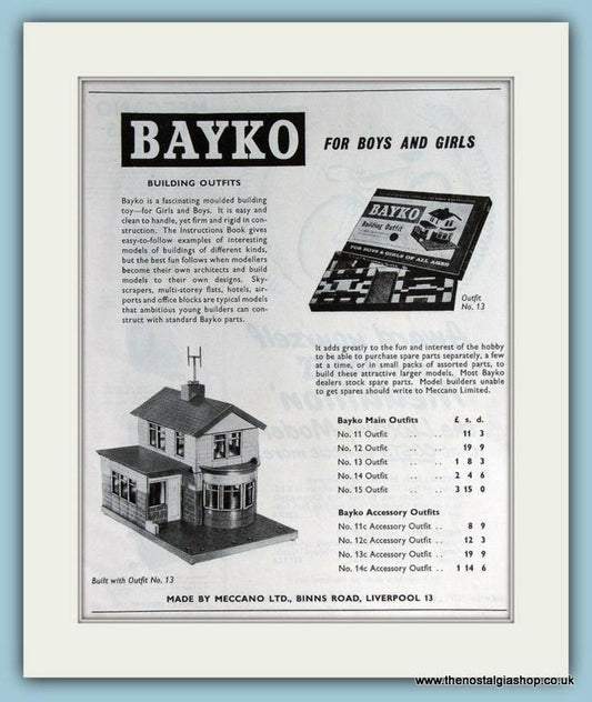 Bayko Building Outfits. 2 x Original Adverts 1960's (ref AD2808)