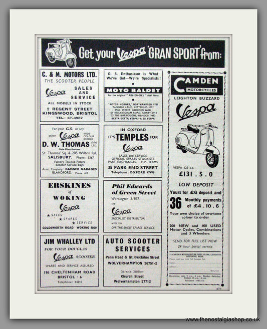 Vespa Gran Sport Dealers Guide. Pair of Original adverts 1960 (ref AD52482)