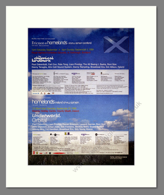 Homelands Festival - Line Up. Vintage Advert 1999 (ref AD20538) Double Advert