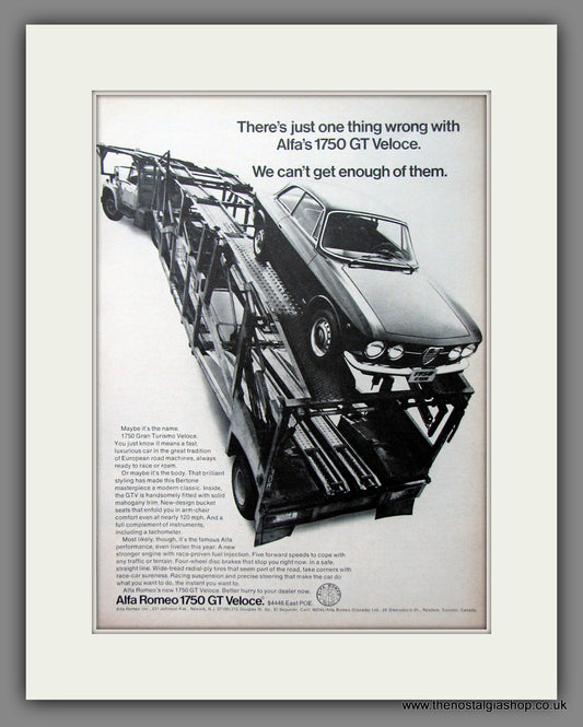Alfa Romeo 1750 GT Veloce. Original American Advert 1971 (ref AD54575)