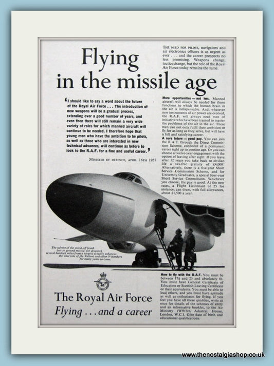 R.A.F Flying And Career Original Advert 1958 (ref AD6271)