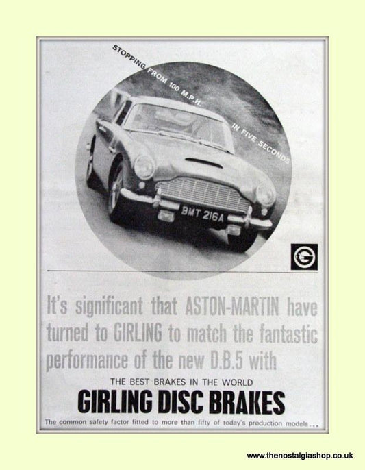 Aston Martin Girling Brakes Original Advert 1952 (ref AD6752)