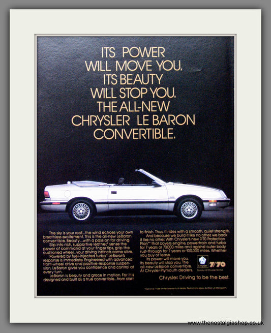 Chrysler Le Baron Convertible. Original American Advert 1987 (ref AD52550)