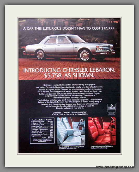 Chrysler Lebaron '77. Original American Advert 1977 (ref AD52598)
