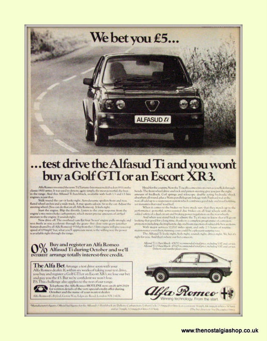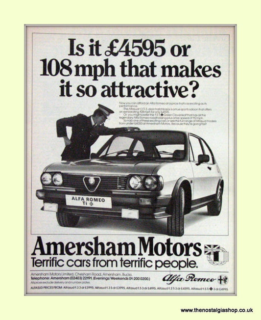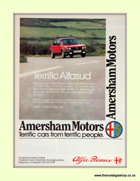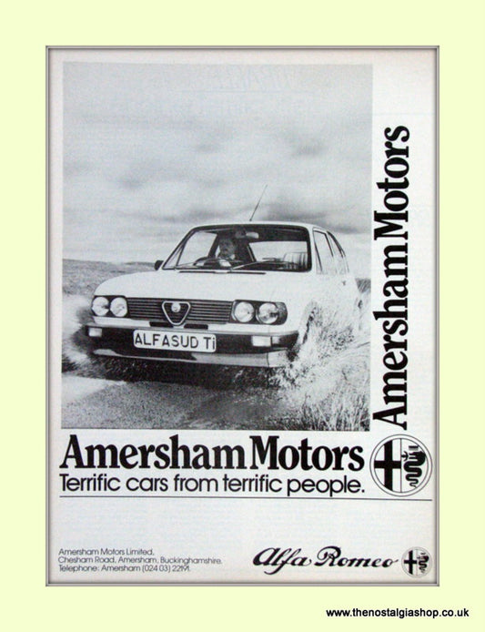 Alfa Romeo Alfasud 1.3 Ti. Amersham Motors. Set of 3 Dealership Original Adverts 1984 (ref AD50012)