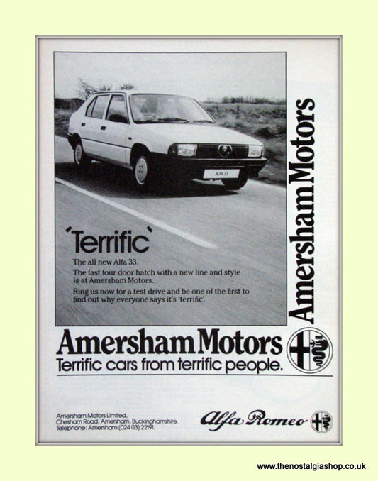 Alfa Romeo Alfa 33. Amersham Motors. Dealership Original Advert 1983 (ref AD50014)