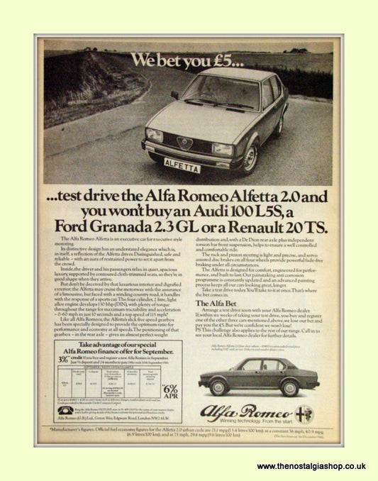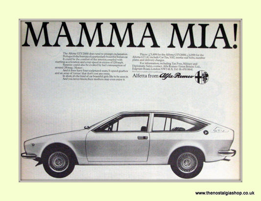 Alfa Romeo Alfetta. Mamma Mia!. Original Advert 1977 (ref AD50108)