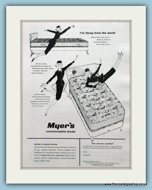 Myer's Comfortable Beds. Set of 2 Original Adverts 1959 (ref AD2408)