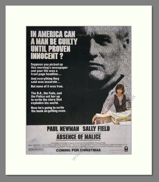 Absence Of Malice - Paul Newman. Vintage Advert 1981 (ref AD302210)