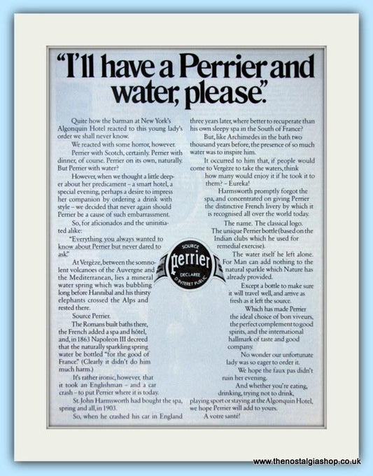 Perrier. Set of 2 Original Adverts 1980s (ref AD4862)