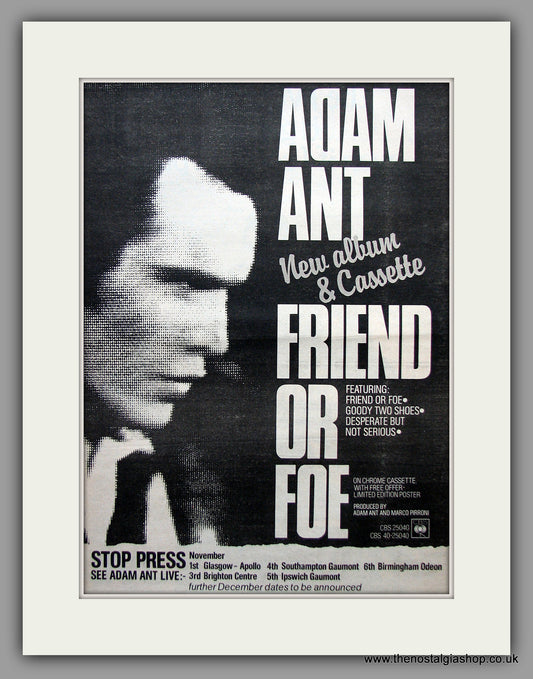 Adam Ant. Friend or Foe. Original Vintage Advert 1982 (ref AD10915)