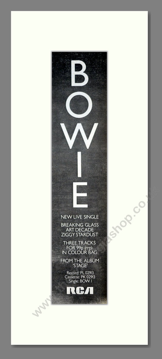 David Bowie - Live Single Breaking Glass / Art Decade / Ziggy Stardust (Double Advert). Vintage Advert 1978 (ref AD19985)
