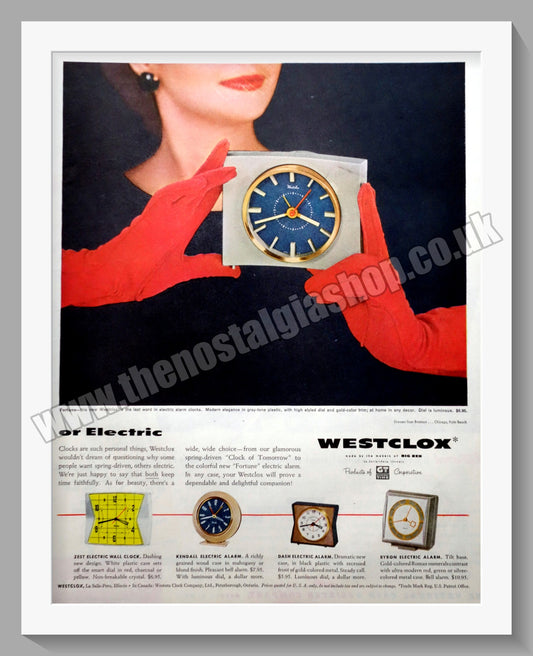 Westclox Alarm Clocks. Original Double Advert 1955 (ref AD300806)