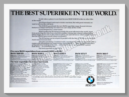 BMW R100RS Motorcycle. 1976 Original Double Advert (ref AD58394)