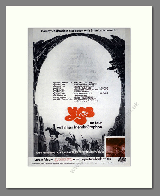 Yes In Concert with Gryphon. UK Tour. Vintage Advert 1975 (ref AD14560)
