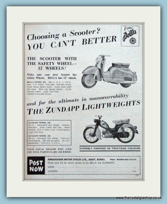 Bella Scooter & Zundapp Lightweight bike, 1960 Original Advert (ref AD4091)