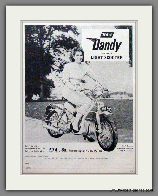 BSA Dandy 70 Light Scooter. Original Advert 1956 (ref AD54183)
