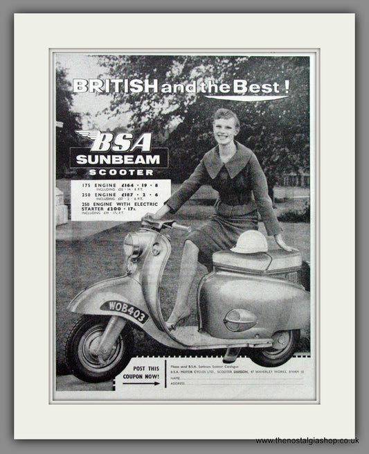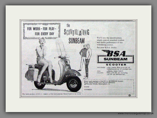 BSA Sunbeam Scooter. Original Advert 1958 (ref AD54184)