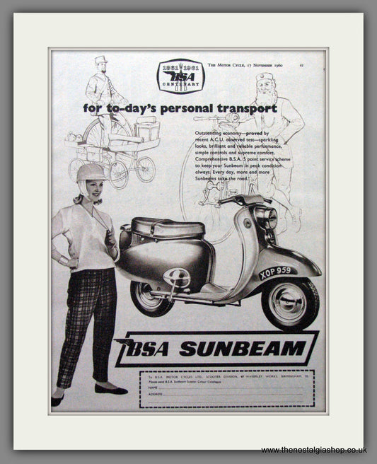 BSA Sunbeam Scooter. Original Advert 1960 (ref AD54186)