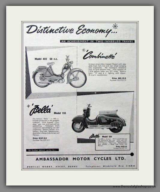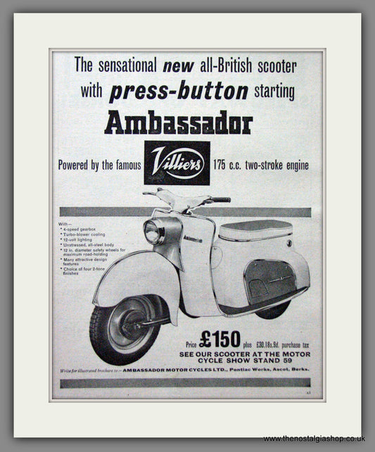 Ambassador Scooter with Villiers Engine. Original Advert 1960 (ref AD54237)
