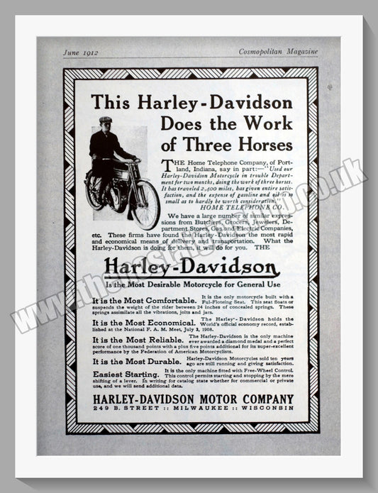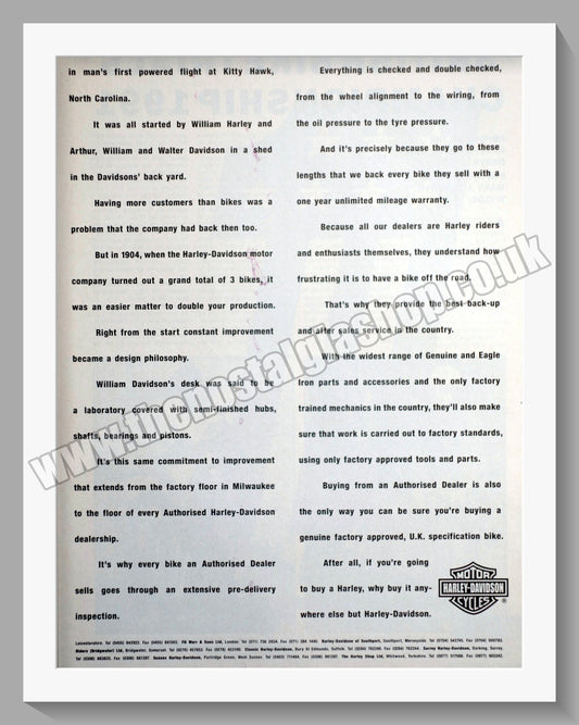 Harley Davidson Motorcycles. Reproduction Advert 1988 (from 1912) (ref AD58406)