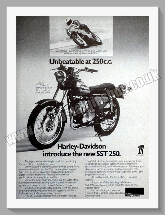 Harley Davidson SST 250 Motorcycle. Original Advert 1976 (ref AD58407)