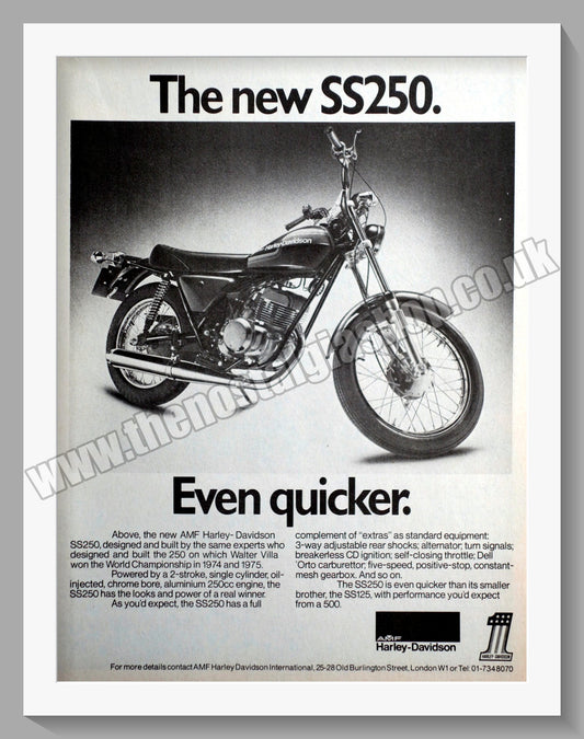Harley Davidson SS 250 Motorcycle. Original Advert 1975 (ref AD58408)