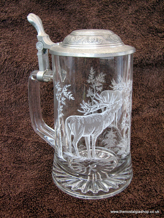 Glass Stein with Pewter Lid. Reindeer. (ref Nos034)