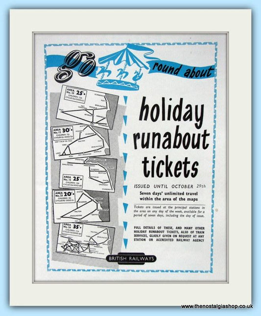 British Railways Holiday Runabout Tickets. Original Advert 1953 (ref AD61107)