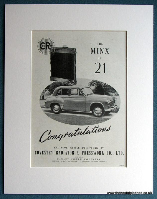 Hillman Minx 21st Anniversary Set Of 2 1953 Original Adverts (ref AD1712)