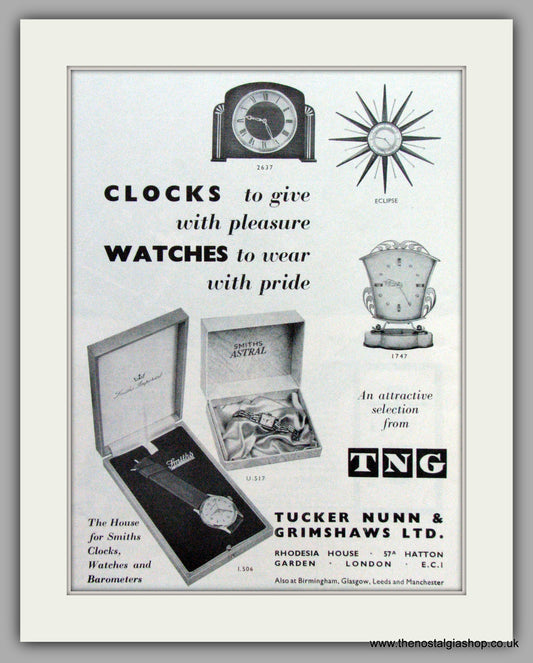 T.N.G Watches Showroom. Original Advert 1962 (ref AD7533)