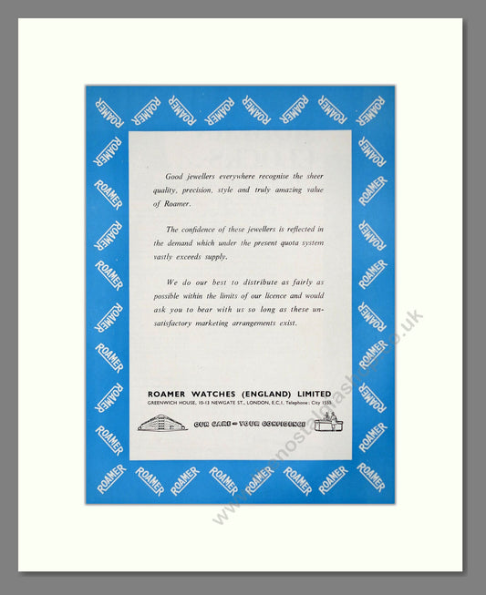 Roamer - Low Stock Letter. Vintage Advert 1954 (ref AD62349)