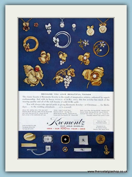 Krementz Jewellery Set Of 3 Original Adverts 1965, 1967 & 1969 (ref AD6174)