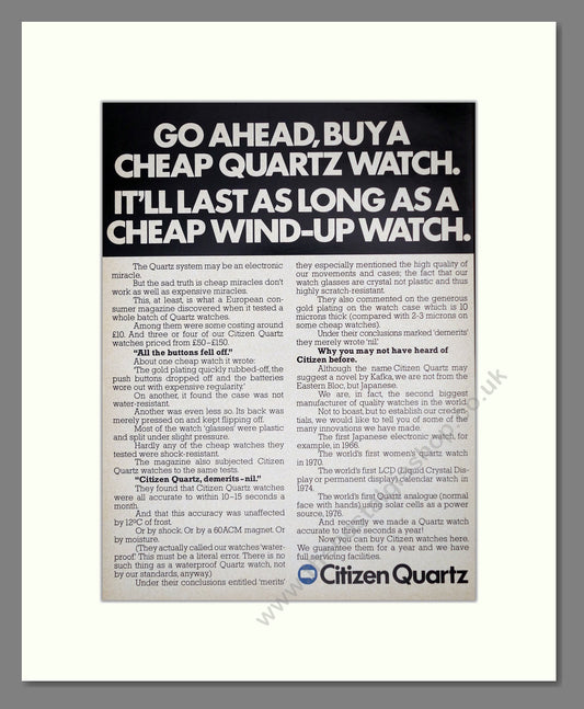 Citizen Quartz Watches. Original Advert 1977 (ref AD60907)