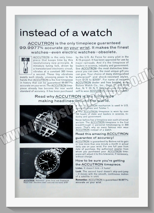Bulova Accutron Astronaut Watch. Original Advert 1964 (ref AD300786)