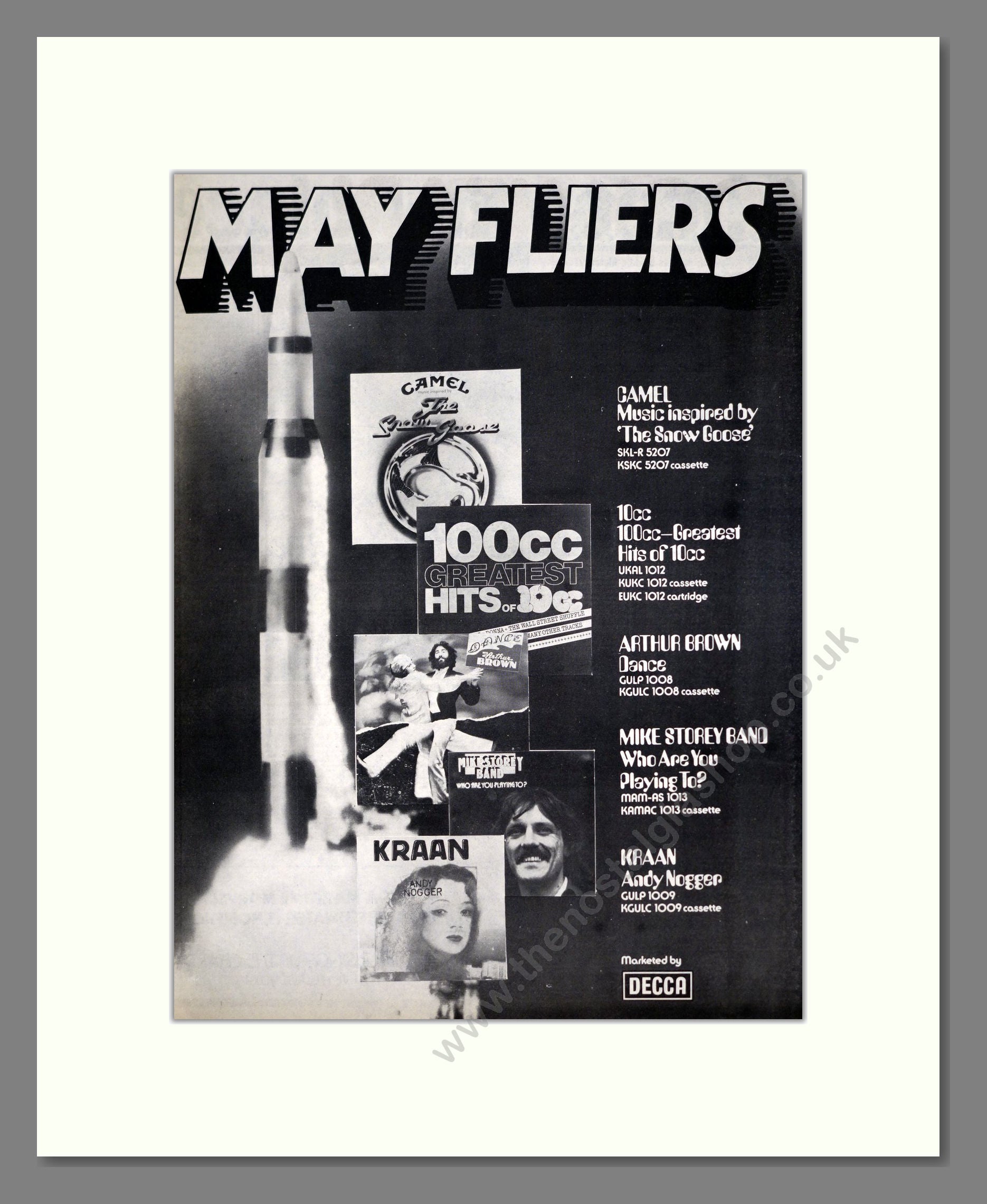 10CC / Camel / Kraan - Various Albums. Vintage Advert. This is a large classic original advert from 1975. Presented and supplied in a cream bevel cut mount with backing card and clear bag. Ready to fit in a 20 x 16 inches frame. The mounted advert will be posted via courier and well packed - protected with a sheet of hardboard to keep it rigid. Any questions or enquiries, please get in touch, we are here to help! All our adverts, unless clearly stated are originals from the date shown. They make excellent pieces of wall art and stunning gifts. Many are rare and hard to find and once sold, may not be replaced. Remember you are buying a piece of history. Website watermark is not on original.