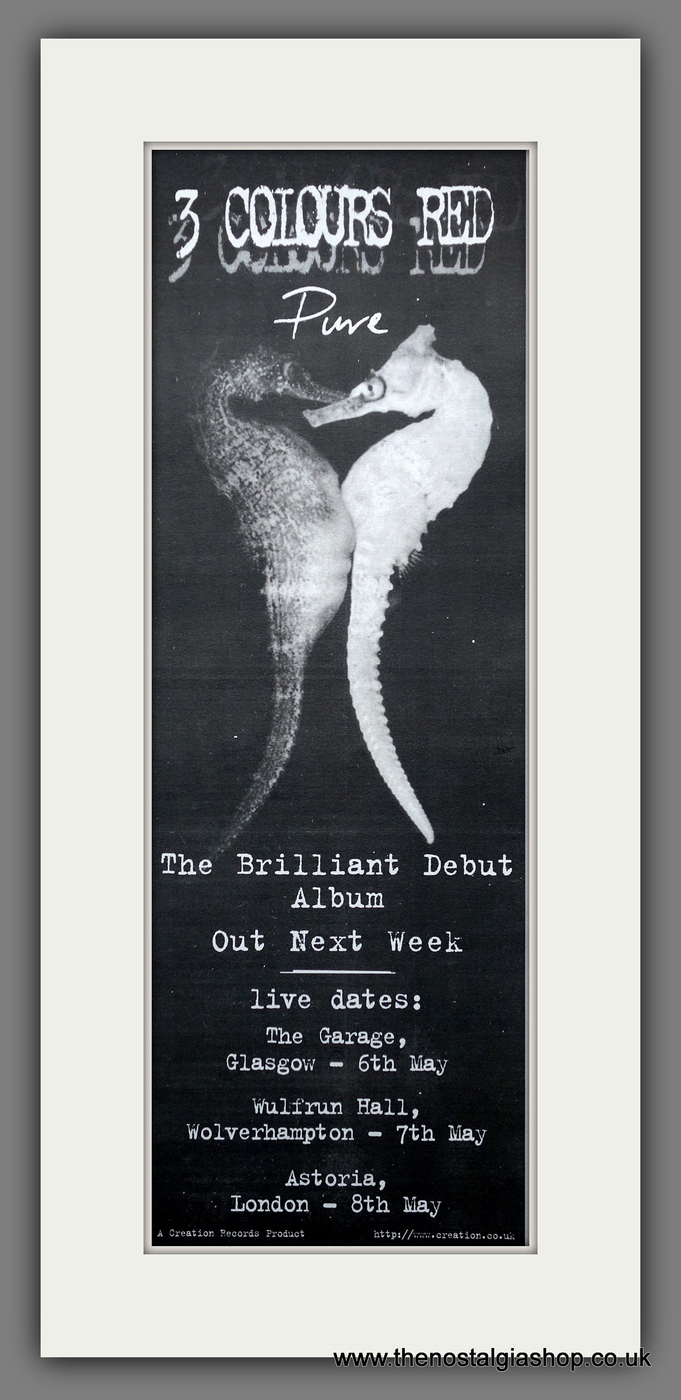 Three Colours Red. Pure. Vintage Advert. Original advert 1997. Presented and Supplied in cream bevel cut mount with backing card and display bag. Ready to fit in 20 x 10 inch frame. All our adverts, unless clearly stated are Originals from the date shown. They make excellent pieces of wall art and stunning gifts. Many are rare and hard to find and once sold, may not be replaced. Remember you are buying a piece of history. Website watermark is not on original.