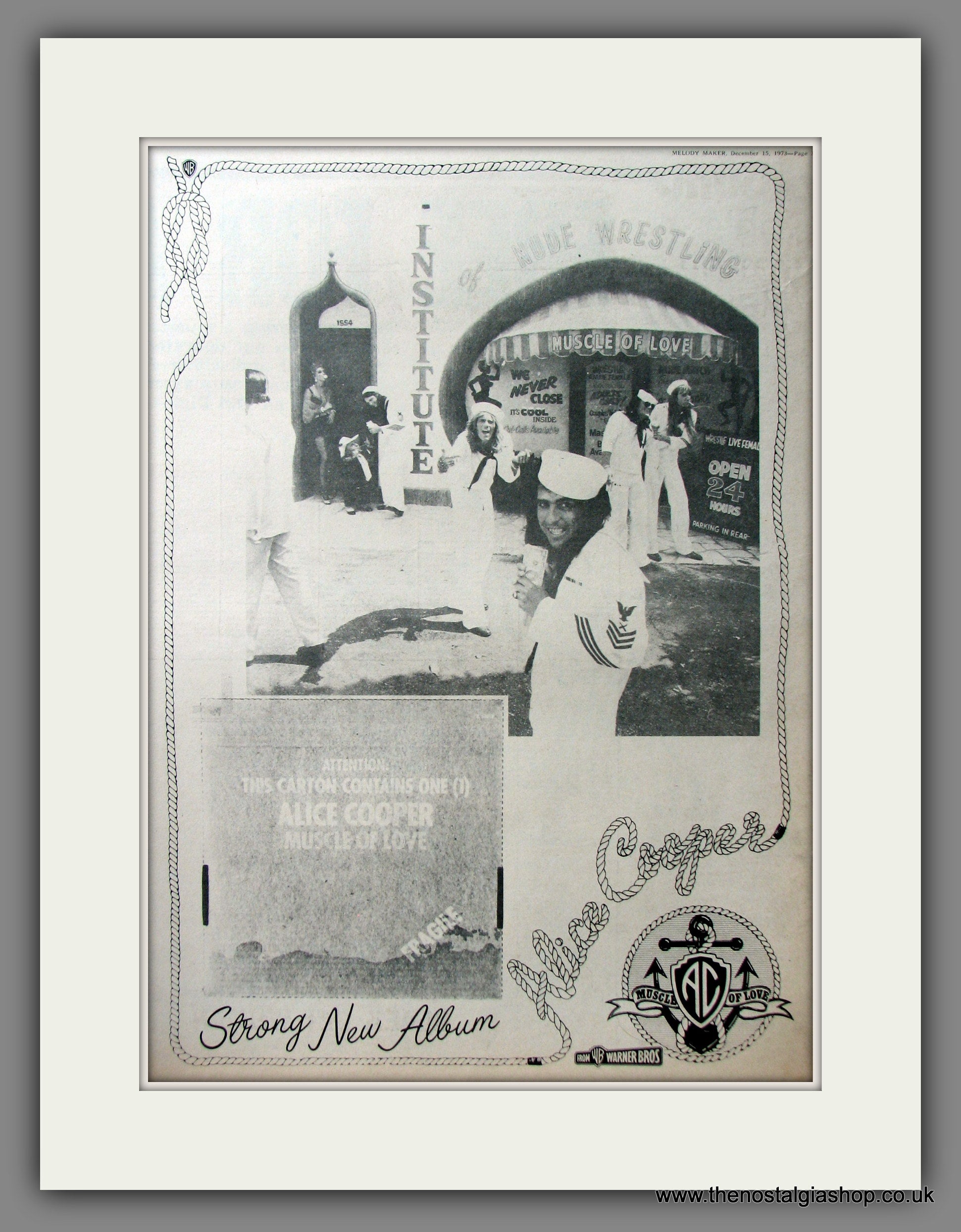 Alice Cooper. Music Of Love. Original Advert 1973 (ref AD11604). Presented and supplied in a cream bevel cut mount with backing card and clear bag. Ready to fit in a 20x16 inch frame. The mounted advert will be posted via courier and well packed - protected with a sheet of hardboard to keep it rigid. Any questions or enquiries, please get in touch, we are here to help! All our adverts, unless clearly stated are originals from the date shown. They make excellent pieces of wall art and stunning gifts. Many are rare and hard to find and once sold, may not be replaced. Remember you are buying a piece of history. Website watermark is not on original.