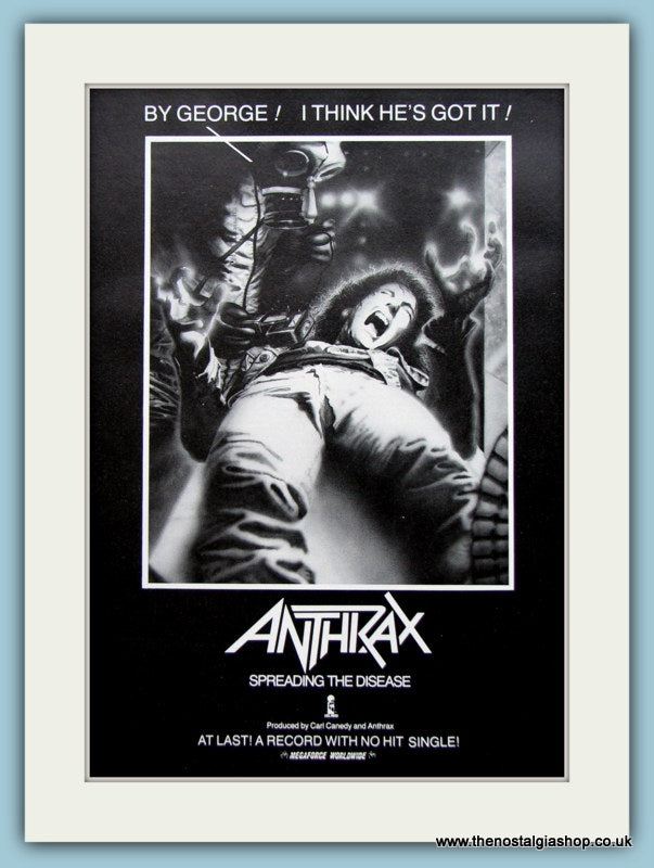 Anthrax Spreading The Disease. Classic original advert . Presented in cream bevel cut mount with backing card and clear bag. Ready to fit in 14 x 11 inch frame. Want it framing? If so, buy this then go to Frames Available Category. Click to buy on the suitable frame and we will do the rest. All our adverts, unless clearly stated are Originals from the date shown. They make excellent pieces of wall art and stunning gifts. Many are rare and hard to find and once sold, may not be replaced. Remember you are buying a piece of history. Website watermark is not on original.