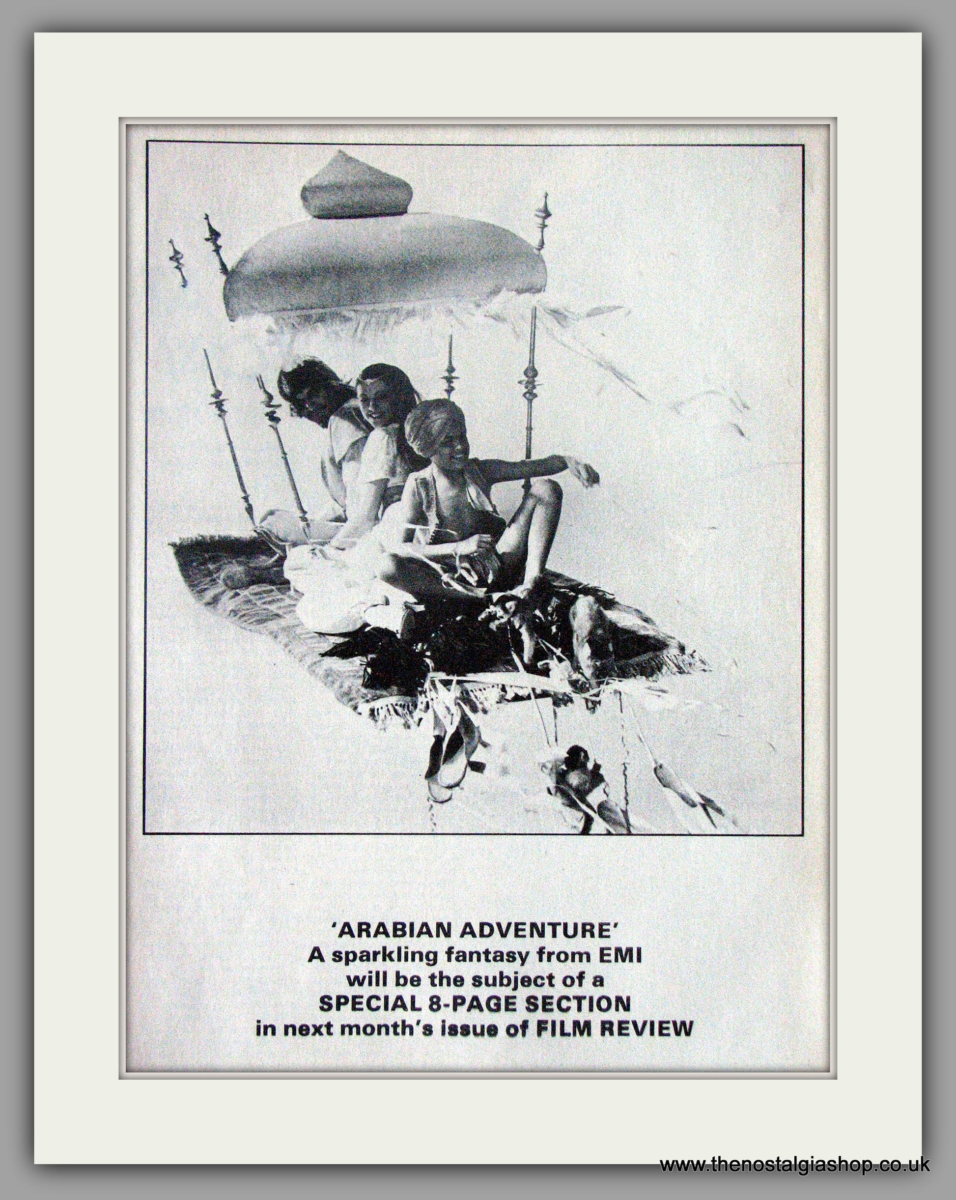 Arabian Adventure EMI. Original advert 1979. Presented in cream bevel cut mount with backing card. Ready to fit in 14 x 11 inch frame. Want it framing? buy this then go to Frames Available Category. Click to buy on the suitable frame and we will do the rest. All our adverts, unless clearly stated are Originals from the date shown. They make excellent pieces of wall art and stunning gifts. Many are rare and hard to find and once sold, may not be replaced. Remember you are buying a piece of history.