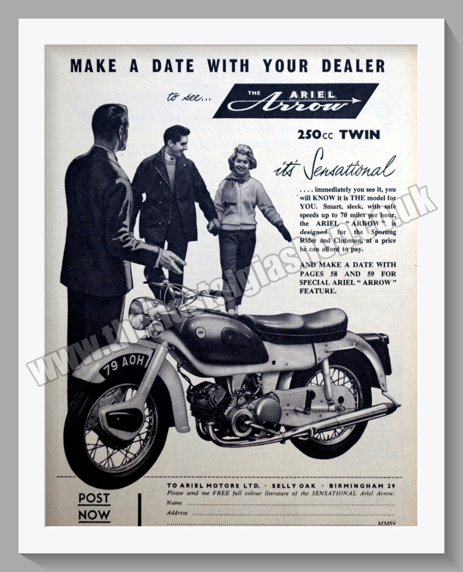 Ariel Arrow Motorcycles. Original Vintage Adverts 1960. Presented and Supplied in a cream bevel cut mount with backing card and clear bag. Ready to fit in 14 x 11 inch frame. All our adverts, unless clearly stated are Originals from the date shown They make excellent pieces of wall art and stunning gifts. Many are rare and hard to find and once sold, may not be replaced. Remember you are buying a piece of history. Website watermark is not on original. Ariel Motors Ltd, Ariel Bikes, Vintage Ariels. Ariel Motorcycles.
