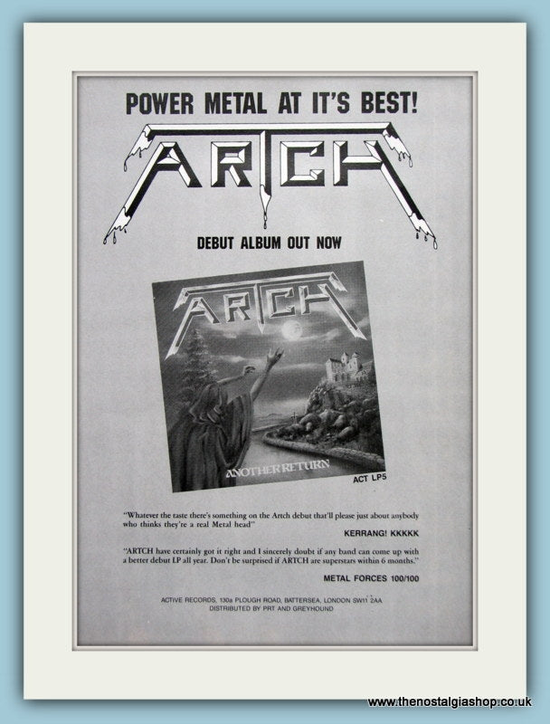Artch. Debut album out now. Classic original advert 1988. Presented in cream bevel cut mount with backing card and clear bag. Ready to fit in 14 x 11 inch frame. Want it framing? If so, buy this then go to Frames Available Catagory. Click to buy on the suitable frame and we will do the rest. All our adverts, unless clearly stated are Originals from the date shown. They make excellent pieces of wall art and stunning gifts. Many are rare and hard to find and once sold, may not be replaced. Remember you are buying a piece of history. Website watermark is not on original.