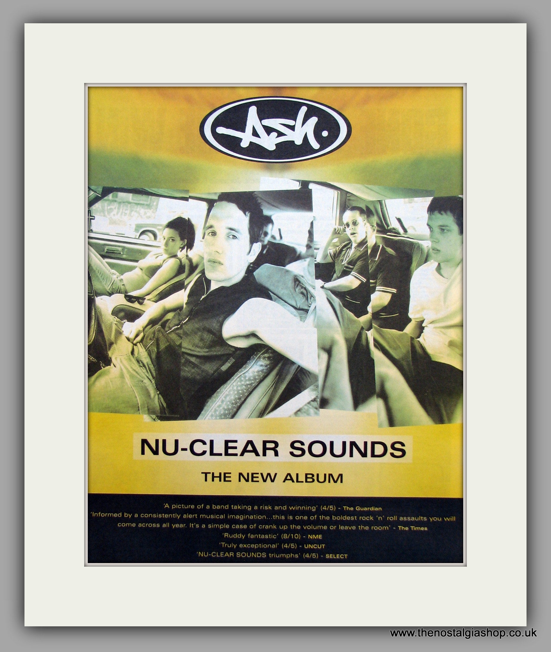 Ash Nu-Clear Sounds. Original Vintage Advert 1998 (ref AD10582). Presented and supplied in a cream bevel cut mount with backing card and clear bag. Ready to fit in a 20x16 inch frame. The mounted advert will be posted via courier and well packed - protected with a sheet of hardboard to keep it rigid. Any questions or enquiries, please get in touch, we are here to help! All our adverts, unless clearly stated are originals from the date shown. They make excellent pieces of wall art and stunning gifts. Many are rare and hard to find and once sold, may not be replaced. Remember you are buying a piece of history. Website watermark is not on original.