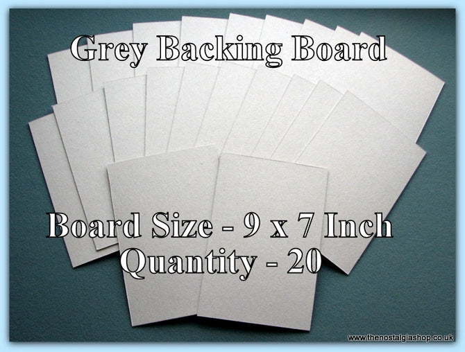 20 x Sheets, Grey Backing Board. 9 x 7 Inch. Price is per 20 sheets, so if you want 40, change the quantity to 2, etc, etc. Other Sizes Available.