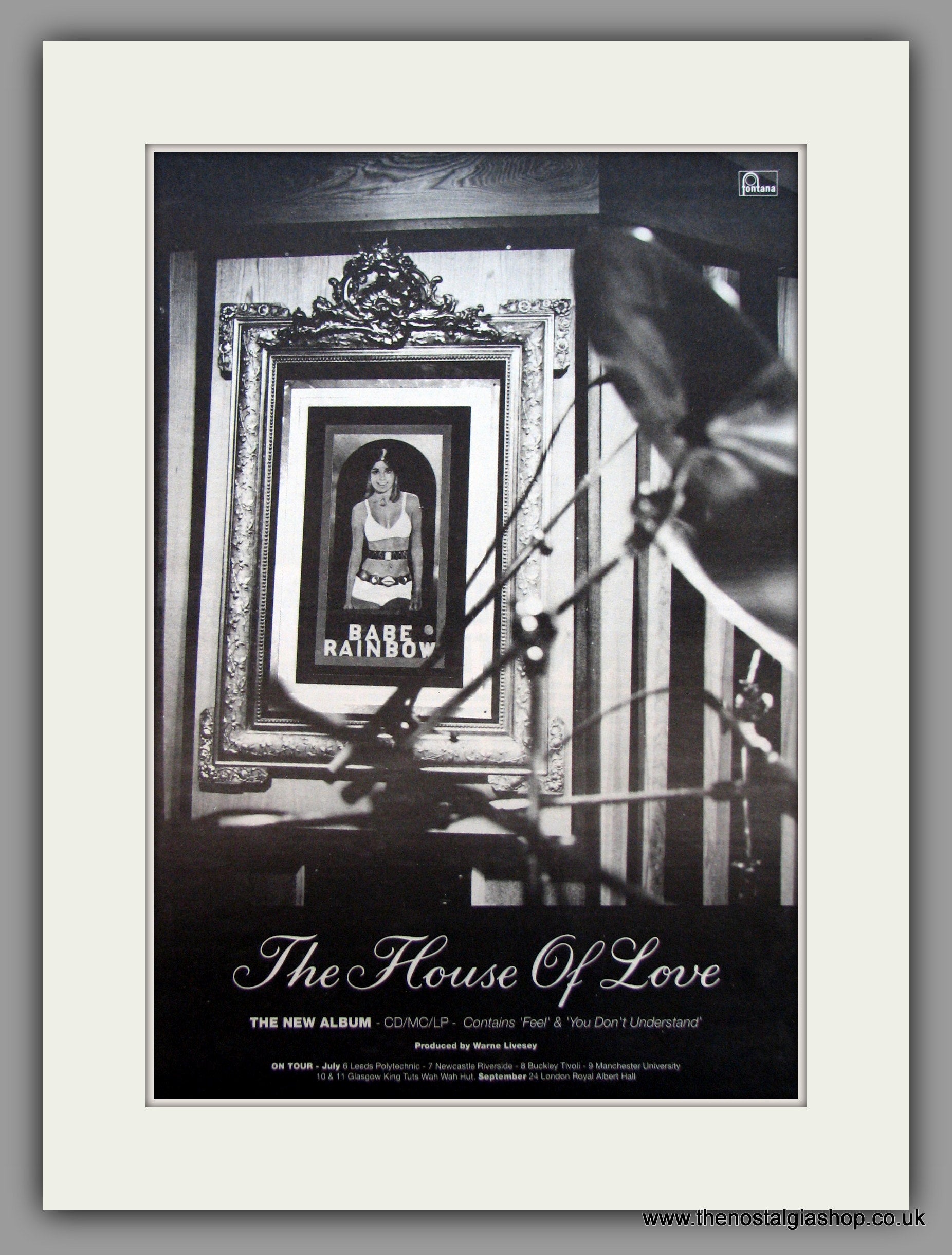 Babe Rainbow-The House Of Love. Original Vintage Advert 1992 (ref AD10625). Presented and supplied in a cream bevel cut mount with backing card and clear bag. Ready to fit in a 20x16 inch frame. The mounted advert will be posted via courier and well packed - protected with a sheet of hardboard to keep it rigid. Any questions or enquiries, please get in touch, we are here to help! All our adverts, unless clearly stated are originals from the date shown. They make excellent pieces of wall art and stunning gifts. Many are rare and hard to find and once sold, may not be replaced. Remember you are buying a piece of history. Website watermark is not on original.